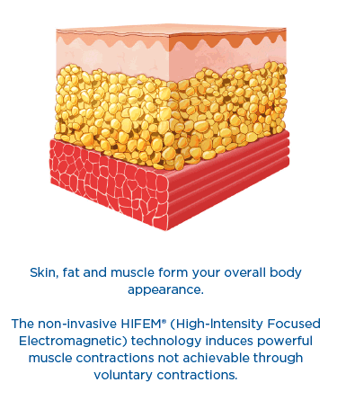 Emsculpt® is intended for improvement of abdominal tone, strengthening of the abdominal muscles, development of firmer abdomen. Strengthening, toning and firming of buttocks and thighs. Improvement of muscle tone and firmness, for strengthening muscles in arms.